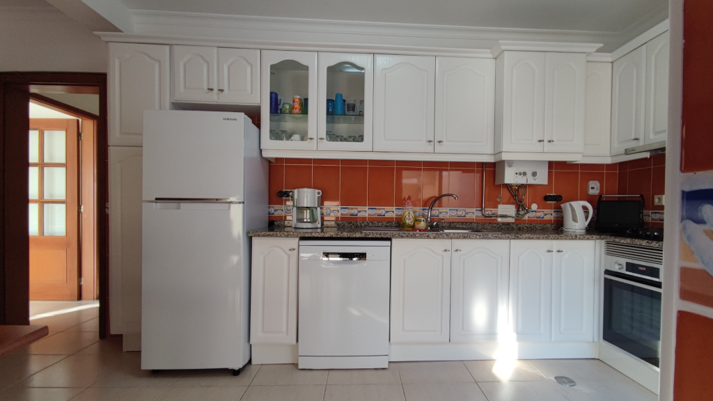 De keuken is ruim en voorzien van alle benodigdheden zoals (koeken)pannen, koffiezetapparaat, tosti-ijzer, waterkoker, diverse soorten glazen en bestek. De keuken is ook voorzien van een ruime tafel en 4 stoelen, makkelijk voor bijvoorbeeld het ontbijt.