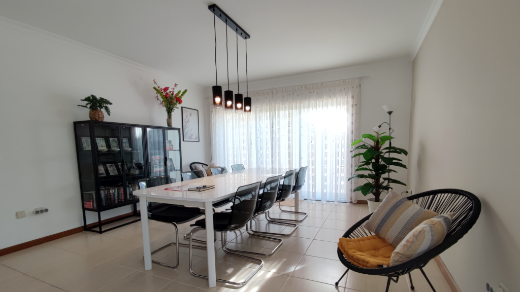 De ruime, compleet en modern ingerichte eetkamer vormt één geheel met de woonkamer en is ingericht voor max. 8 personen.