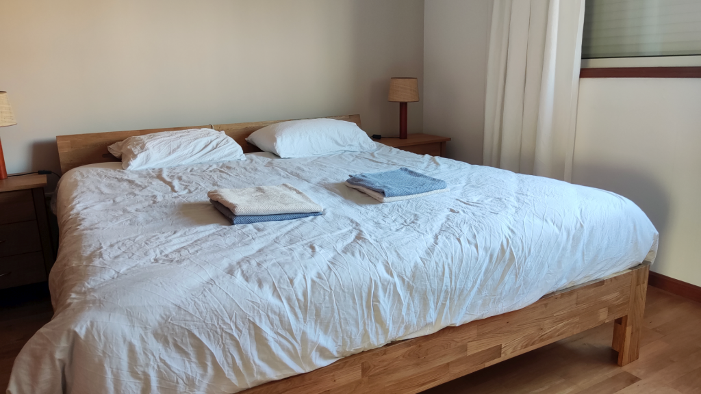 Dit is de ruimste slaapkamer van het huis met een tweepersoonsbed van 180 x 200 cm. nachtkastjes, make-up tafeltje en grote inbouwkledingkast. Door het grote raam op het noorden, een hele mooie lichte kamer.